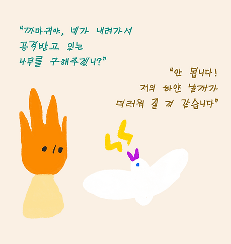Ps. 다른 새들에게 몹시 실망한 타네 마후타😤는 날개 가꾸기에만 바쁘던 까마귀의 몸을 전부 검게🐦‍⬛만들어버렸고, 축축한 걸 싫어하는 도요새를 늪지에서만💦 서식하도록 하였으며. 둥지에 집착하는 뻐꾸기는 평생 남의 둥지에만🪺 알을 낳을 수 있게 했대요!😂
